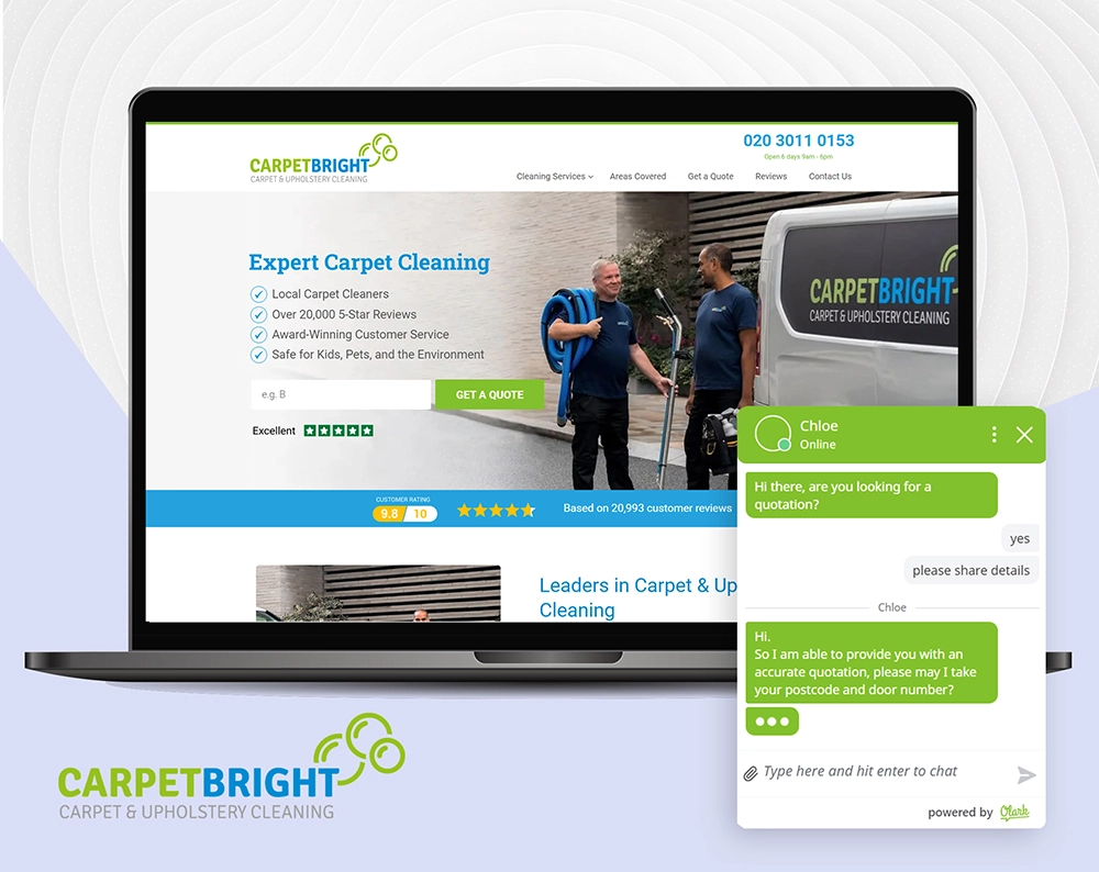 Carpet Bright UK required a website that attracted more customers and simplified the user journey. The challenge was integrating multiple functionalities without sacrificing the website’s speed or usability. Additionally, the website needed to seamlessly handle large amounts of data, from customer inquiries to real-time service requests, while ensuring a smooth experience for both customers and internal teams managing the site.